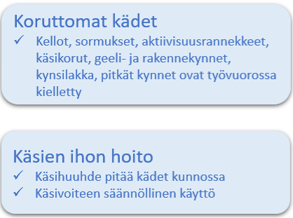 Hyvä käsihygienia on infektioiden ja tartunnan torjunnan perusta. Se on oleellinen osa potilas- ja työturvallisuutta. Hyvän käsihygienian toteuttaminen kuuluu jokaiselle terveydenhuollon ammattilaiselle.